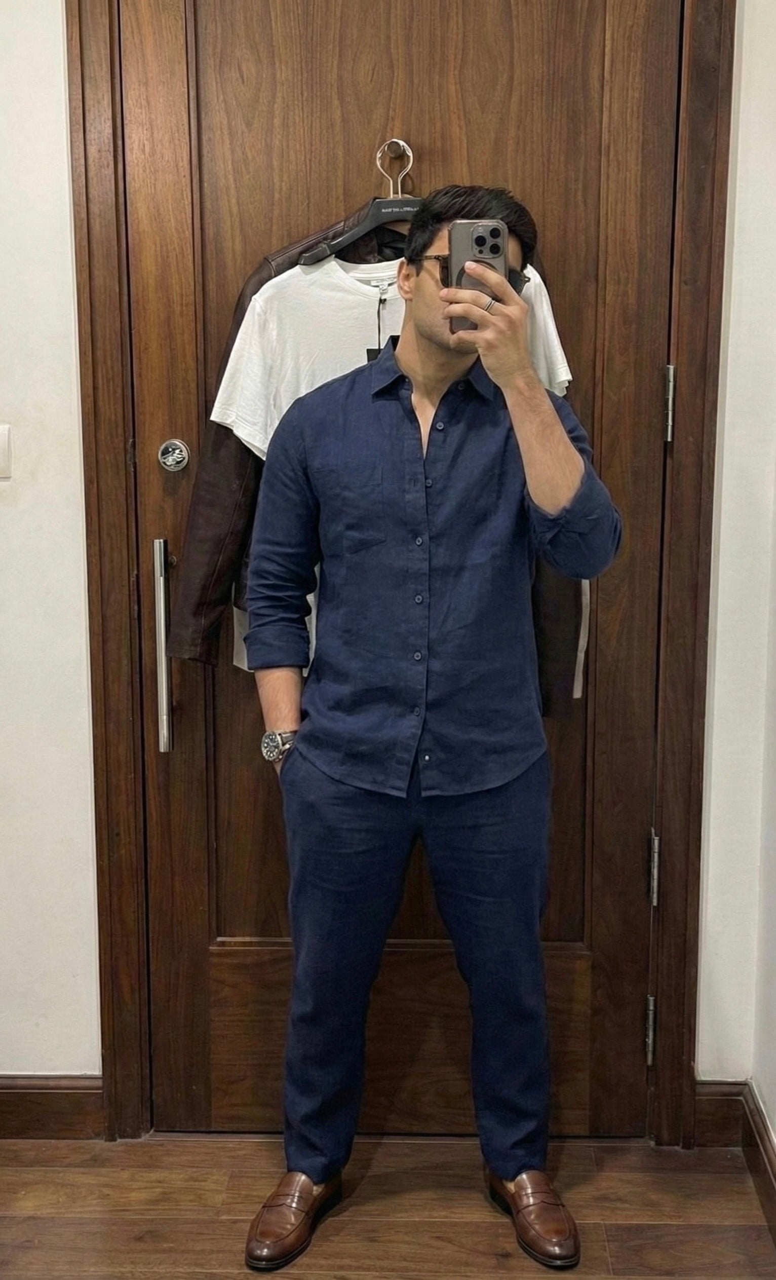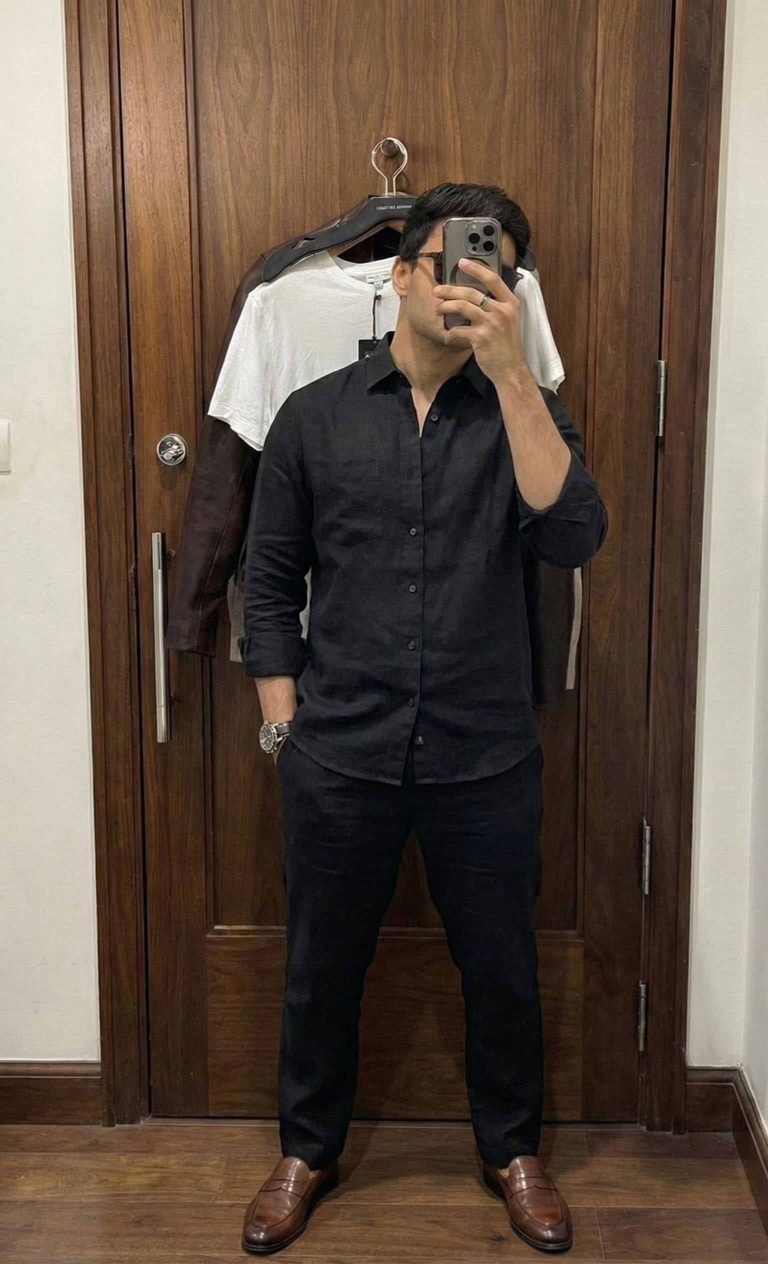 Full-sleeve button-down shirt with a relaxed, tailored look